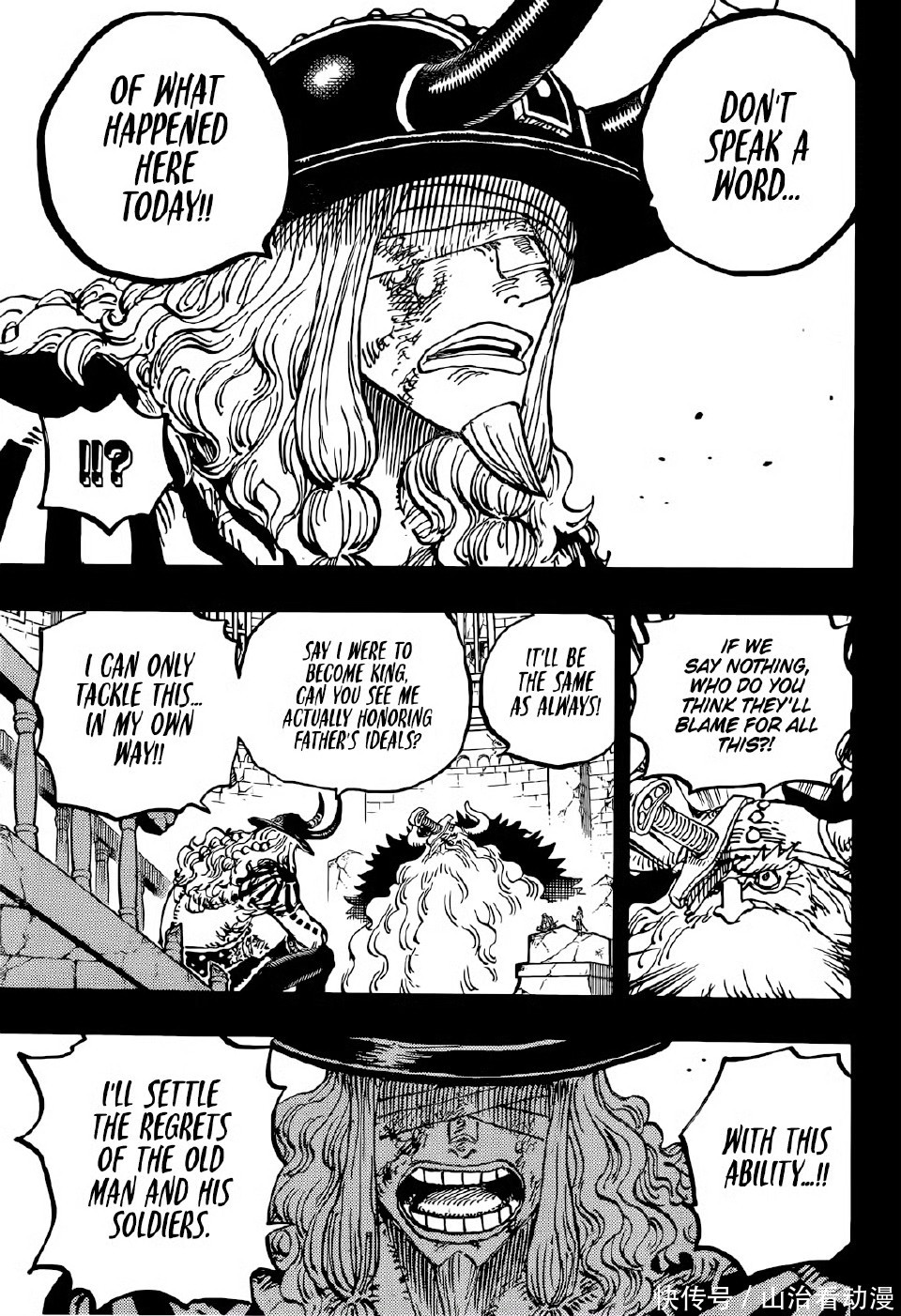 哈拉尔德国王的回忆剧情终于结束了,洛基王子杀死哈拉尔德国王,终结了城堡大战。他要为父亲报仇,带着几个士兵出海,估计是在外面大闹很长时间,直到红发香克斯击败洛基王子,把他送回艾尔巴夫关押在冥界。