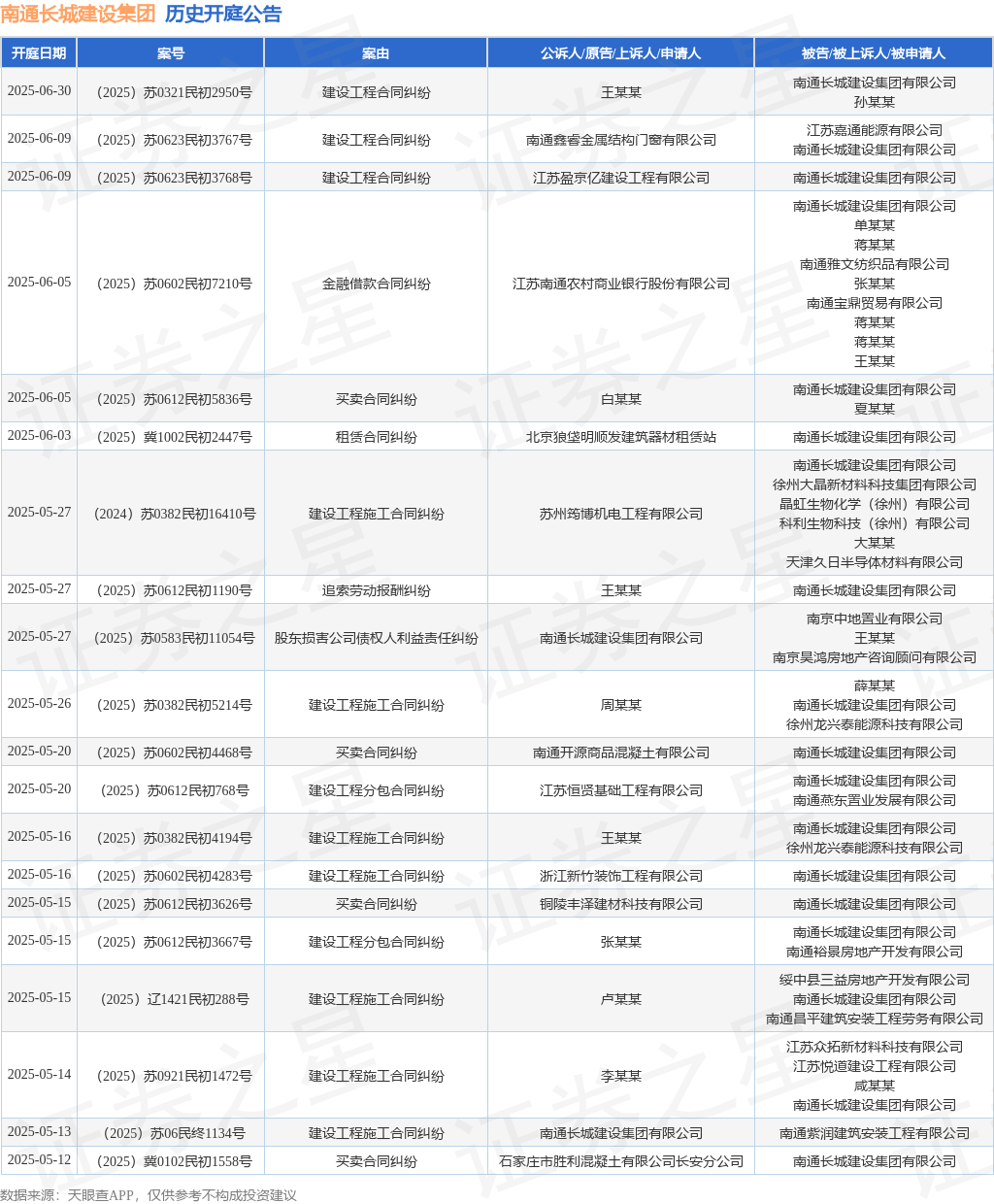 本站消息易多投资,根据天眼查APP显示,近日公布了一则南通长城建设集团有限公司作为被告/被上诉人的开庭公告,详细内容如下:
