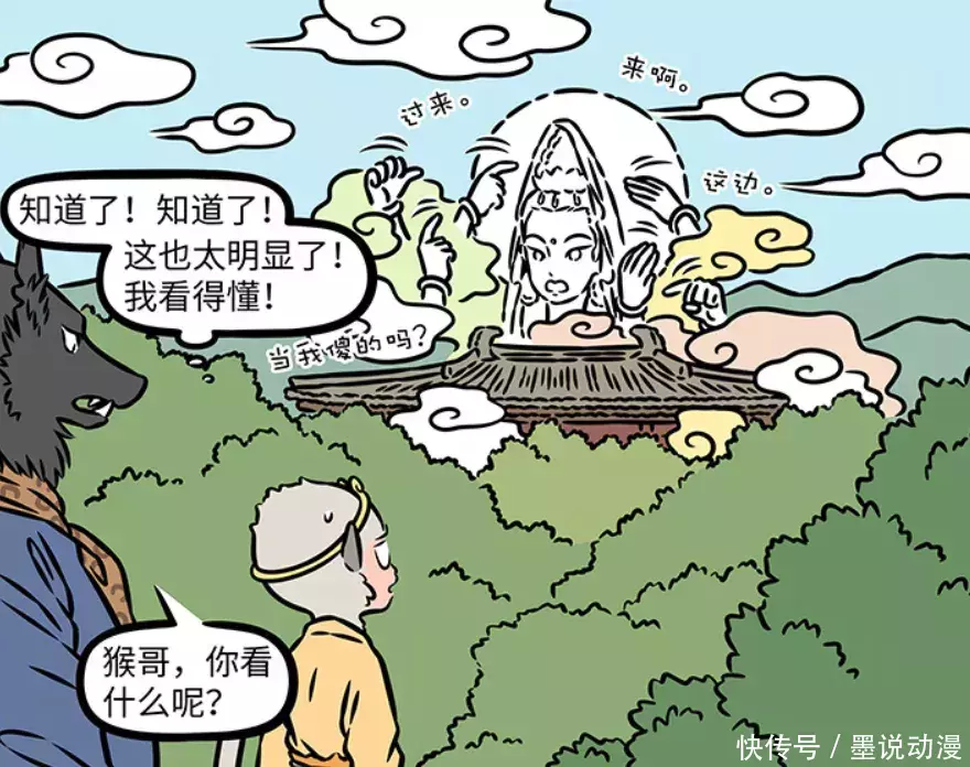 《非人哉》第1188话更新,这一话是围绕着《西游记》第二十三回“四圣试禅心”展开。只是故事跟西游记中有点不一样,猪八戒和孙悟空原本想去化斋,发现一处庄院有仙佛气息。观音想用虚像让孙悟空过去新富策略,可是孙悟空早就识破。不过孙悟空还是按照剧本走,黎山老母则是变成妇人,但还是被孙悟空识破。
