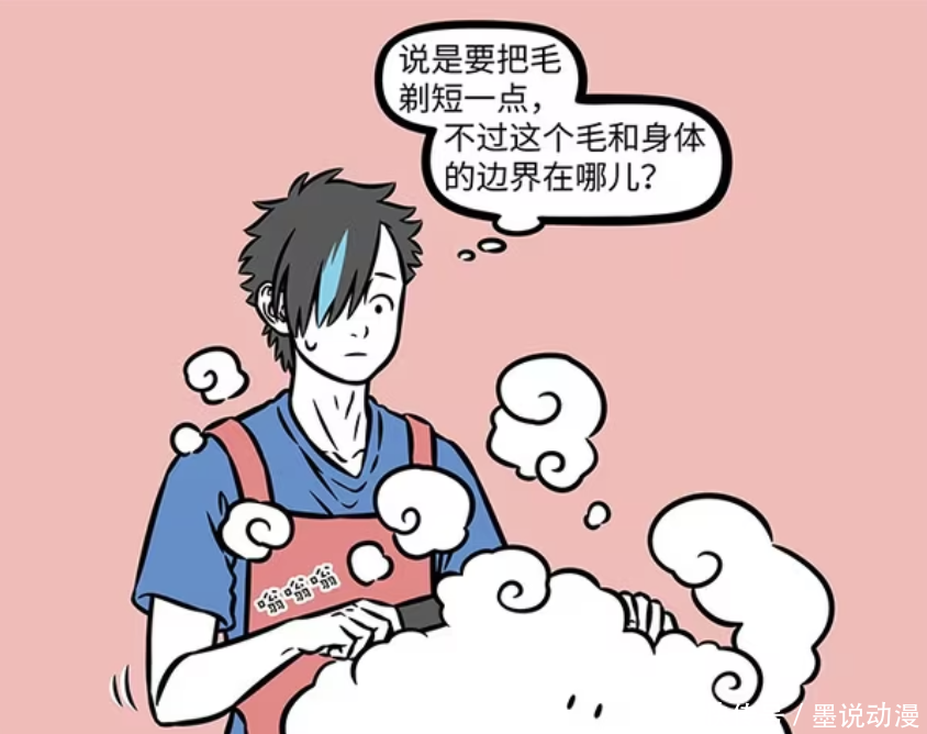 因为没有给云剃毛的经验,所以托尼老师只能靠感觉。孙悟空的要求是把筋斗云的毛剃短一点,可是绝大多数托尼老师都有个通病,他们对短一点似乎有什么误解。托尼老师不知道筋斗云的毛和身体的边界在哪里,所以剃毛过程中还是很紧张。